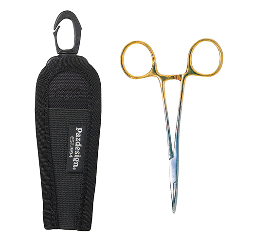 Un cârlig cu arc este atașat în partea superioară a corpului principal, permițând atașarea acestuia la inelul D al unei genți sau al unei curele de susținere a pescuitului. Partea din spate are un buton cu arc, permițând atașarea la curele cu lățimea de până la 50 mm, cum ar fi gențile de șold.